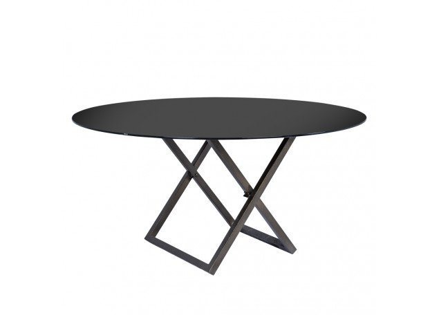 Mesa Base X em Ferro Envelhecido com Tampo de Vidro Preto