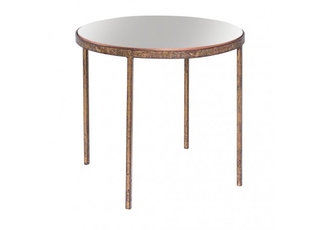 Mesa Redonda de Ferro Ouro Velho com Tampo de Espelho